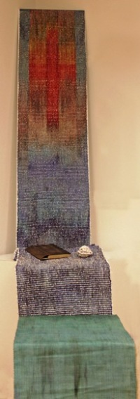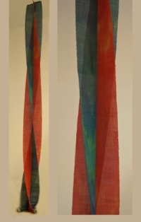 Die Kettfäden aus Seidengarn habe ich in Rot -